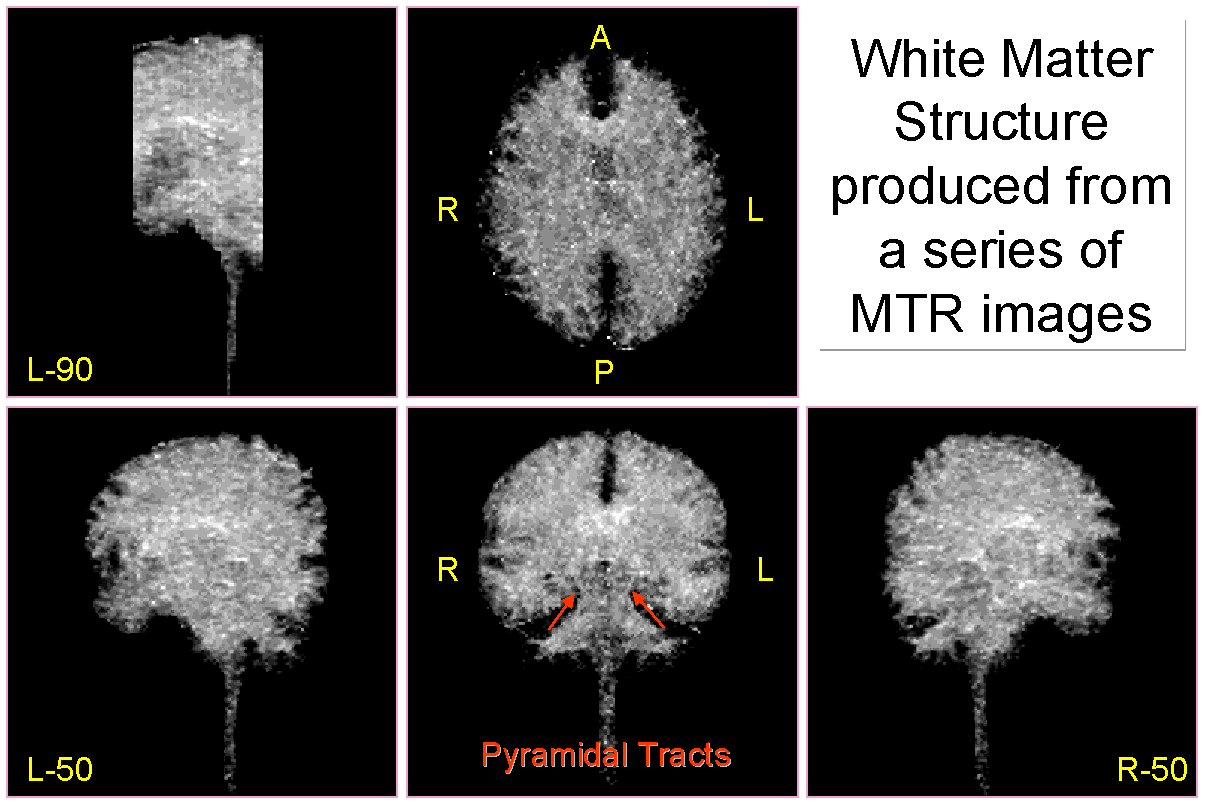 筆者等は、脳白質が他組織に比してmagnetization transfer ratio (MTR)が高いこと、MTRはミエリンの密度に依存した値を呈すること等を考慮し、白質神経路の三次元的な描出にMTRを用いる手法を考案した(Tatsuhiko Ito, Yasutomi Kinosada, Masao Kaneko : Three-dimensional cerebral tractography - An application of magnetization transfer ratio ・ Jpn. J. Tomogr. ・ Vol.24 ・ No.1,2 ・ 11 〜 17 ・ 1998)。