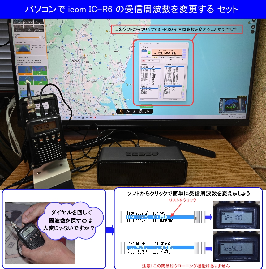 | パソコンで icom IC-R6 の受信周波数を変更する セット [M-02] |