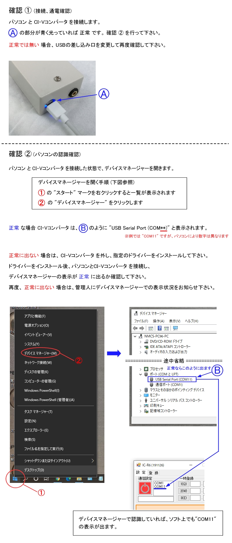 下記が指定ドライバーのインストール方法です。確認Aがダメな場合、ドライバーをインストールして下さい。